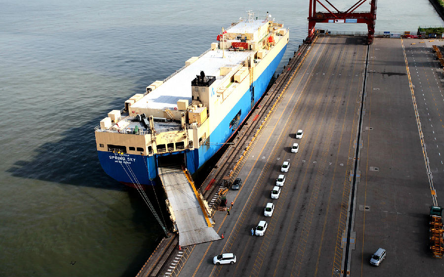 7月12日,100辆比亚迪E6纯电动汽车在盐田港集团旗下大铲湾码头通过滚装船漂洋过海驶往目的地泰国林查班。这是大铲湾整车口岸首次以滚装船的方式出口汽车,也是比亚迪首次在深圳如此大规模的通过滚装船将汽车运送至国外。
