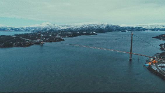 该桥全长1533米,主跨1145米,位于地球上最北端的港口城市-挪威北部纳尔维克市,横跨北部奥福特峡湾,被誉为“与北极光相伴的桥”,是欧洲第五大、挪威第二大悬索桥,也是北极圈跨度最大的悬索桥、欧洲第一座上千米采用预制平行丝股工艺(PPWS)主缆的公路钢箱梁悬索桥。