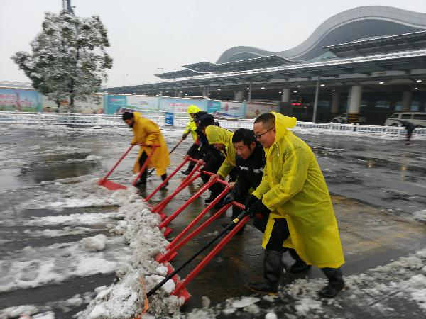 一是航空器除冰雪。机务工作人员24小时坚守岗位不间断为飞机除冰雪,共出动了10辆除冰车、2辆加液车,大雪期间累计除冰近300架次,保障人员出动近800人次,消耗除冰液130多吨,防冰液20多吨。