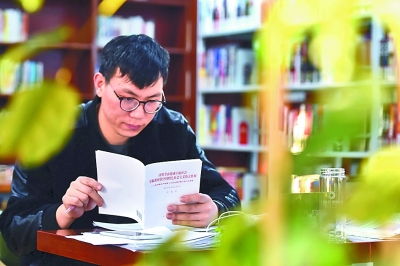 读者在扬州“24小时城市书房”阅读十九大报告。新华社发