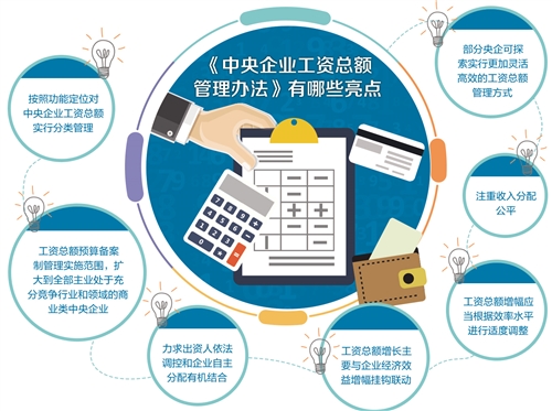 国资委有关负责人表示,《办法》体现了党的十九大提出的坚持质量第一、效益优先的发展理念,符合国有企业改革座谈会提出强化正向激励的有关精神,进一步完善中央企业工资总额与经济效益挂钩决定机制,实行了一系列创新。比如,明确了中央企业工资总额根据效益决定,并按照效率调整,进一步丰富了工资与效益挂钩的内涵,全面树立“工资是挣出来”的核心理念;明确了企业同口径增人不增工资总额、减人不减工资总额的有关规定,鼓励中央企业提高用人效率。