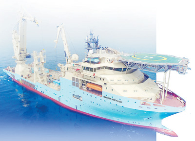 图为中远海运重工旗下大连中远船务建造的系列超深水海工作业船首制船“马士基安装者”。(资料照片)
