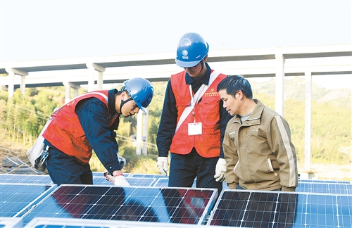 光伏扶贫工程是国务院提出的精准扶贫十项工程之一。国网福建电力积极助力光伏扶贫工程,全力服务光伏发电项目,优先改造光伏发电接入电网,畅通接网绿色通道,全额消纳发电电量,及时做好电费结算和补贴发放工作,确保“电站同步并网、电量全额消纳、收益及时支付”。