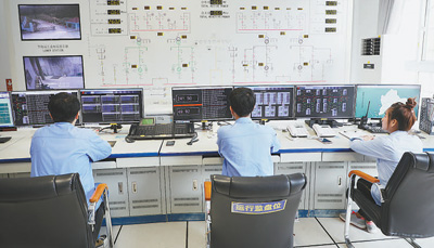 额勒赛水电站员工在中控室内值班。(记者 赵益普摄)