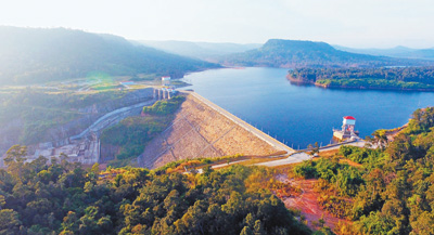 额勒赛水电站分为相距8公里的上下两级,是中国华电集团公司投资建设的BOT(建设—运营—移交)项目。项目于2010年4月开工建设,2013年12月投产发电,多年平均发电量为11.99亿度。据额勒赛项目公司总经理助理谢益明介绍,电站高峰年份发电量在柬埔寨国产电量中所占份额一度超过30%,2014—2018年均发电量占柬埔寨发电量约20%。水电站上大坝巨大的坝体上用中柬两国文字写着“开发水电,福泽百姓”,在郁郁葱葱原始林木的映衬下,八个白色大字引人注目。
