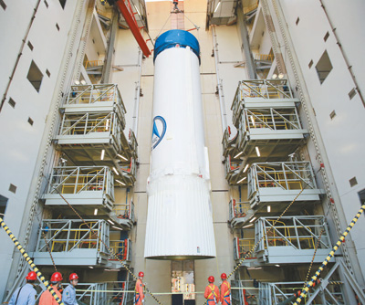 长征三号乙运载火箭吊装场面。(中国航天科技集团一院供图)