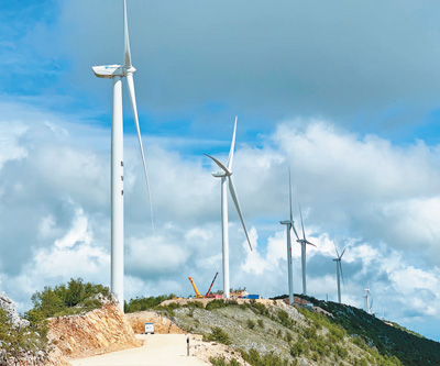 在黑山共和国南部港口城市巴尔的莫祖拉山山脊上,23台中国制造的2.0兆瓦低风速智能风机迎风飞转,映衬着秀美的海岸线,蔚为壮观。