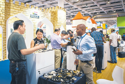非洲客商带来各自精品特产的同时,中国企业也不甘示弱,从智能手机到箱包服饰再到高端装备,同样令人目不暇接。