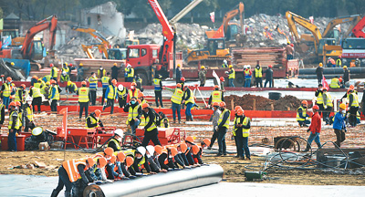 多道工序同时推进,多家单位同场作业,谁也不甘落后,谁也不想最后完工!