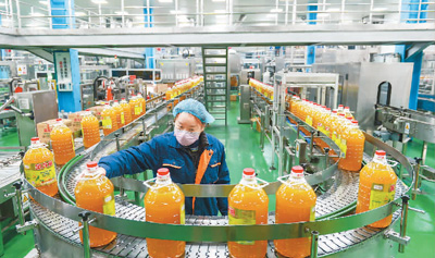 在重庆市江津德感工业园区,一家粮油公司的食用油生产线正在运转。 万难 摄(人民视觉)