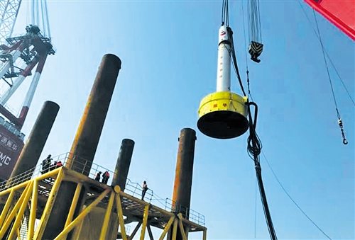 发展海上风电,装备必须先行。海上风力发电机组安装施工的关键环节是将近千吨的整体钢管基础桩植入到海床里。要做到这一点,必然需要大型打桩锤施工装备。可是,作为目前海洋资源开发施工的主力装备,全球海上作业液压打桩锤长期被欧洲两家公司垄断,技术上受制于人不说,高昂的装备价格还大幅抬升了风力发电成本。