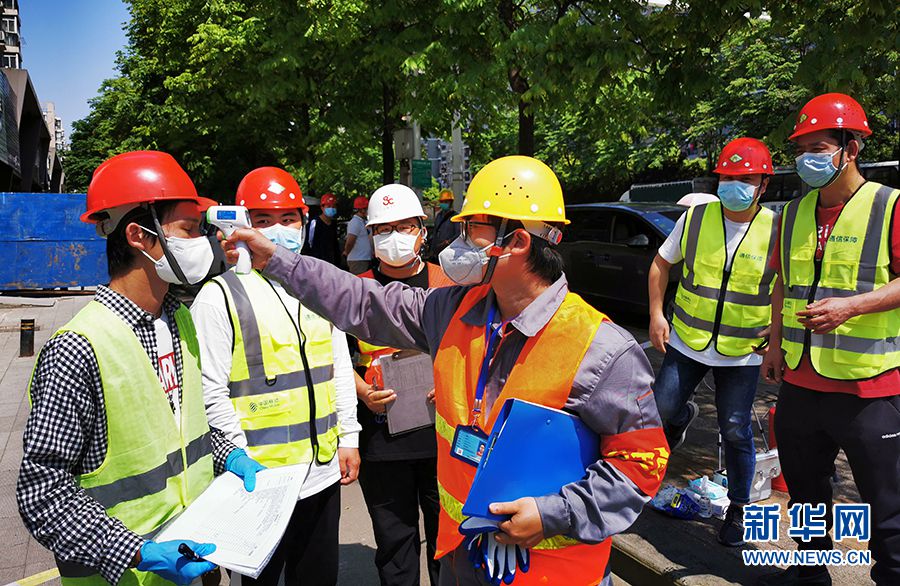 5月8日,在武汉市春雷建材市场附近的一处5G基站施工现场,工人们经过扫码、测温和全身消毒后进入现场开始施工。“‘五一’小长假期间,我们都一直在施工。”湖北移动公司武汉江岸区建维中心5G项目经理付毅说。为了减少人员聚集、抓好疫情防控和安全规范,施工现场还部署了“云监控”视频系统。“从施工人员开始准备,一直到整个站点完工,全程进行云上传。后台随时监控施工中有没有违规操作,有没有风险防范意识不达标等行为。”