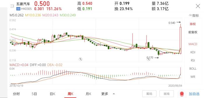 6月4日,五菱汽车的上涨势头仍未停息。全天五菱汽车涨63.93%,报0.50港元/股,股价创近52周新高。
