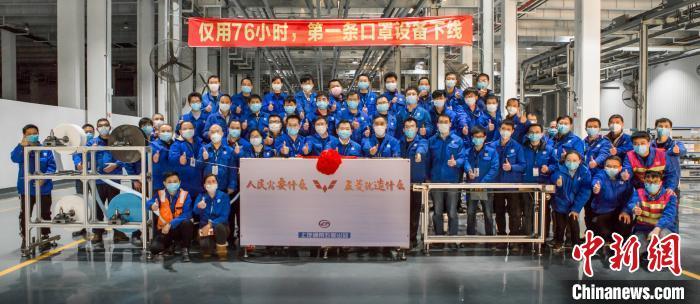 广西第一台自主生产口罩机下线现场。上汽通用五菱供图。