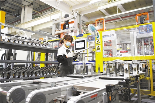 6月22日,在天津海尔洗衣机互联工厂内,工作人员在检查零部件。
