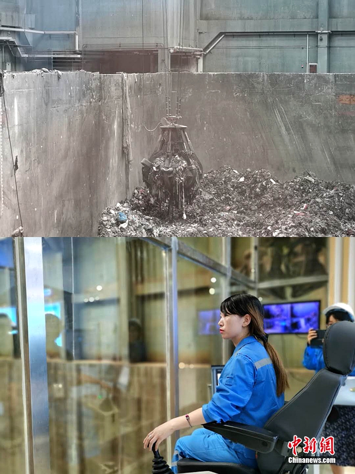 中节能(毕节)环保能源有限公司工作人员正在操作机器把生活垃圾投入焚烧炉