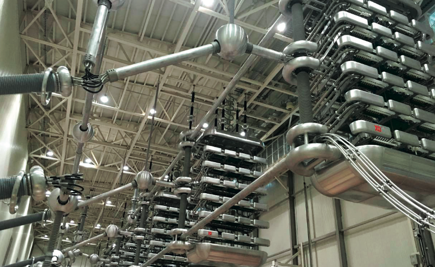 西电电力系统公司为国家电网准东(昌吉换流站)—皖南(古泉换流站) ±1100千伏特高压直流输电工程提供的KGWF-5455 ±1100千伏换流阀。