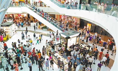 三亚国际免税城内,旅客消费热情高涨。