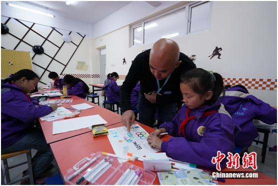 崇礼区希望小学学生在艺术家老师的指导下作画