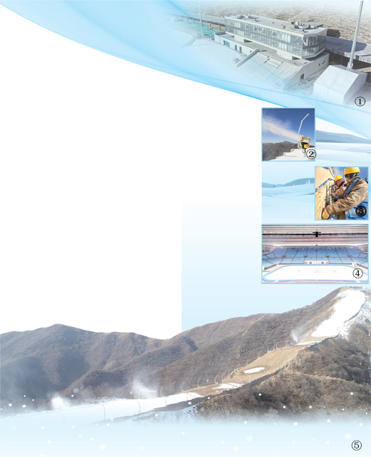 图②、图③、图⑤:建设中的高山滑雪中心。