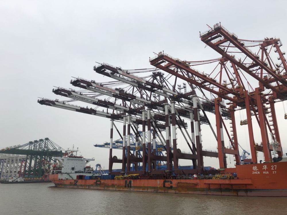 图为上海振华重工制造的岸边集装箱起重机(岸桥)