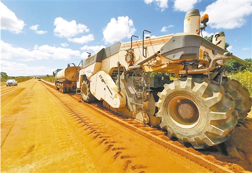 中建集团承建的赞比亚103公里道路升级改造项目施工现场(资料图片)