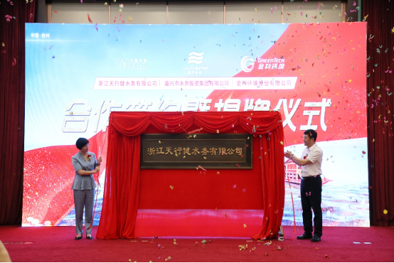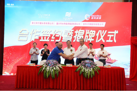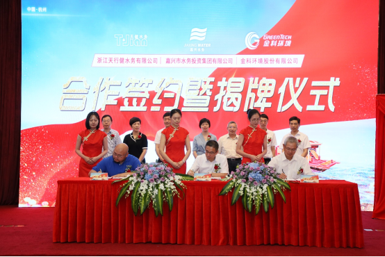 嘉兴水务集团、天行健水务公司、金科环境公司三方代表签约