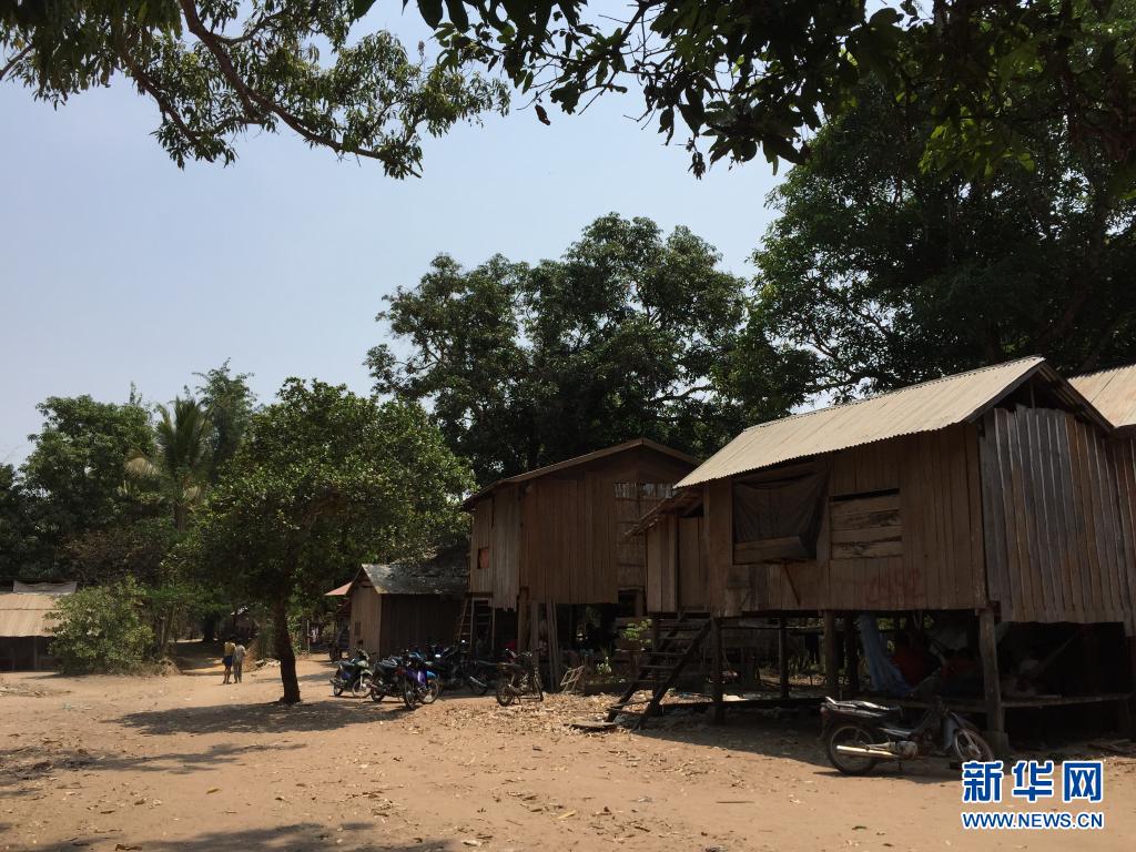 这张2016年3月30日拍摄的资料照片显示的是位于柬埔寨上丁省桑河二级水电站项目所在地附近旧村庄的老房子。