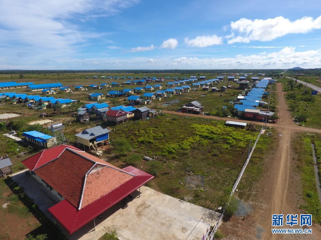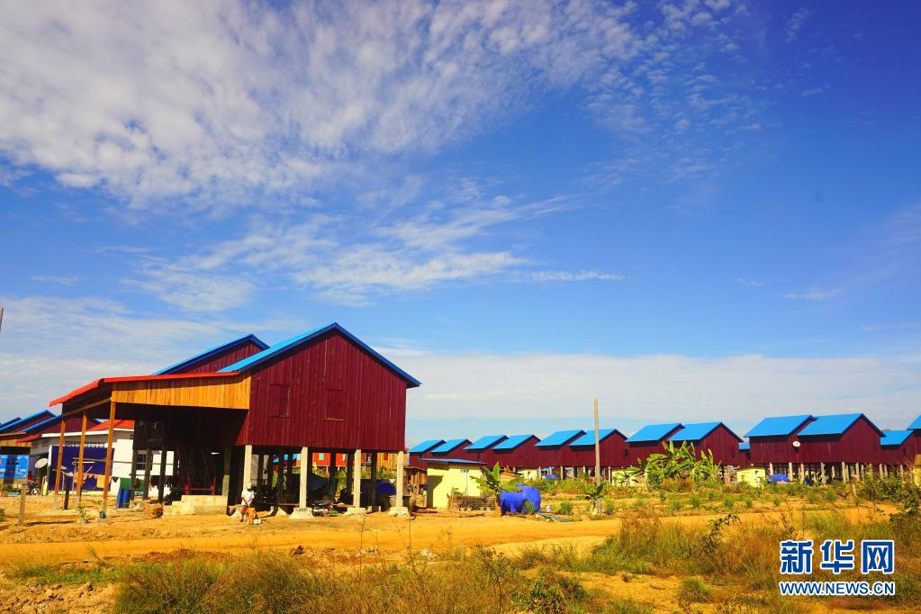 这张2017年11月23日拍摄的资料照片显示的是,柬埔寨上丁省桑河二级水电站的移民村里项目公司为移民盖的新房。
