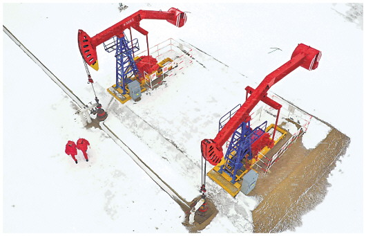 陇东黄土塬上,风裹着雪。在南梁革命根据地所在的华池县,长庆油田陇东页岩油项目部华H60平台“鏖战”正酣。工人们手持扳手,头顶鹅毛飞雪,三人一组维修油井。