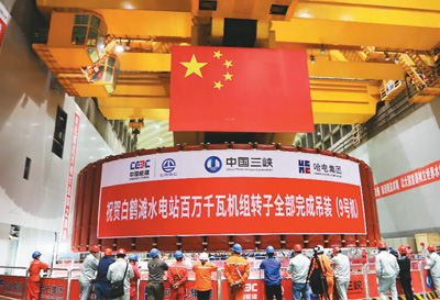 1月18日,白鹤滩水电站最后一台百万千瓦水电机组(9号)转子吊装就位,标志着电站16台百万千瓦水电机组转子全部安装完成。