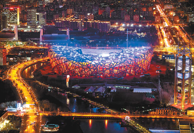 北京国家体育场夜景。
