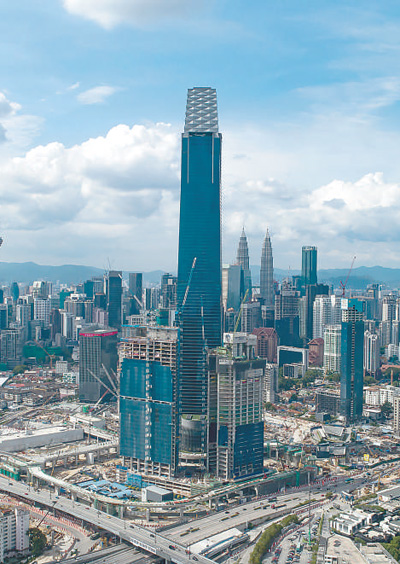 马来西亚首都吉隆坡市中心,一座耀眼夺目的摩天大楼高耸入云。