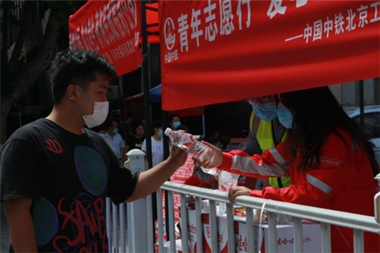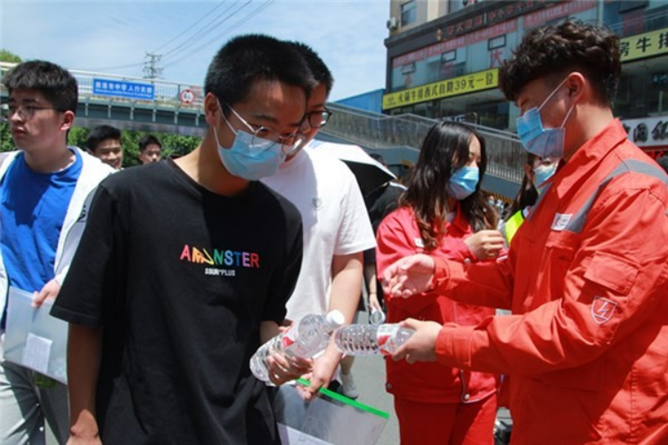 上午十时,考点外已经迎来了炎热的太阳和聚集的家长人群,青年志愿者将一瓶瓶矿泉水递给了他们,送上了最美好的祝福,同时也为阳光下执勤的公安、城管人员送来了物资和问候。突然,人群里一位六十多岁的老人出现了头晕、出虚汗的中暑症状,青年团员们见状马上拿来了藿香正气水等应急药品,经过服药安慰后,老人的症状得以了缓解。原来他是一位考生的爷爷,由于疫情原因孩子的父母都在外地上班回不来,焦急地等待和烈日照射让老人出现了中暑的症状。