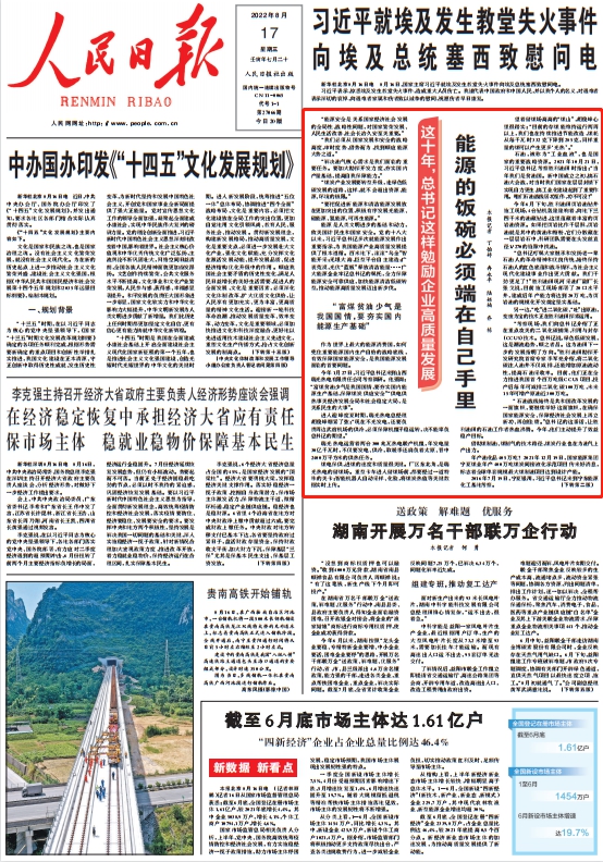 能源是人类文明进步的基础和动力,攸关国计民生和国家安全。党的十八大以来,习近平总书记多次就能源发展作出重要指示,为我国能源产业高质量发展提供了根本遵循。百米地下,滚滚“乌金”智能开采;无垠大海,巨型平台自主建造;广袤荒漠,光伏“蓝板”释放清洁能量……广大能源企业牢记总书记的嘱托,全力保障能源安全可靠供应,加快能源清洁低碳转型,推动能源高质量发展迈出新步伐。