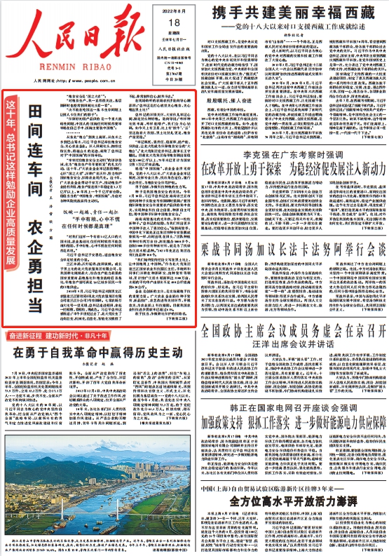 党的十八大以来,广大农业企业牢记总书记的嘱托,发挥资金、技术和人才优势,把小农户纳入现代农业,让广大农民真正挑上“金扁担”。