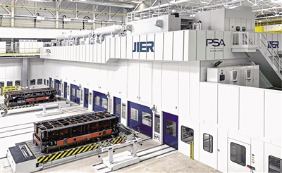 济南二机床集团安装在法国PSA索肖工厂的大型高速冲压生产线。 (济南市国资委供图)