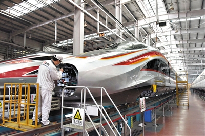 2023年1月4日,一名技术人员在查看“复兴号”智能动车组。