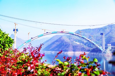 在建世界最大跨径拱桥——广西天峨龙滩特大桥。阳正球摄/光明图片