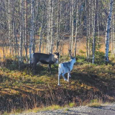 驯鹿穿越中广核集团瑞典北极风电项目场地。
