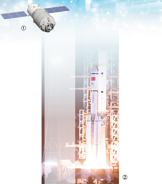 图①:天舟七号模拟图。中国航天科技集团五院供图