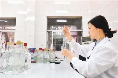2017年11月10日,四川省宜宾五粮液酒厂勾兑师范国琼在车间勾兑白酒。(新华社记者 金良快摄)