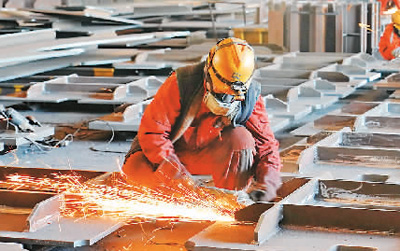 1月25日,河北省秦皇岛市山海关区中铁山桥集团有限公司的工人在钢桥钢结构生产车间工作。(新华社记者 杨世尧摄)