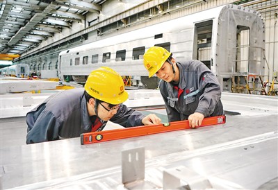 3月23日,河北省中车唐山机车车辆有限公司的工人在复兴号动车组生产线上工作。(新华社记者 杨世尧摄)