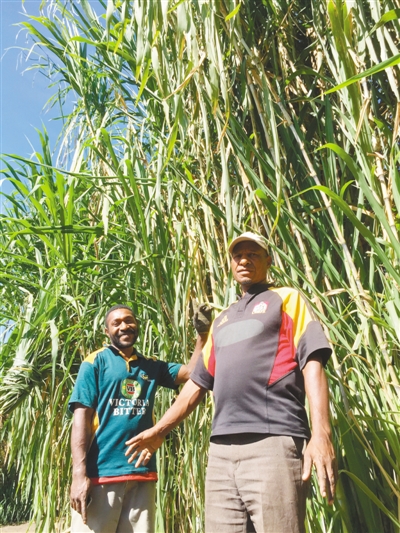 在东高地省的卡洛菲谷牧场,130天前才种植的菌草,已经长成一片2米高的青纱帐。因为传授当地人菌草种植技术的教授是福建农林大学菌草研究所所长林占熺,当地人亲切地给菌草命名为“林草”。