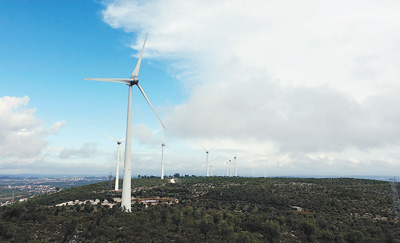 葡萄牙电力公司与中国长江三峡集团成为长期战略伙伴,合作建设了拜罗风电站。图为拜罗风电站的风力发电机组。冯雪珺摄