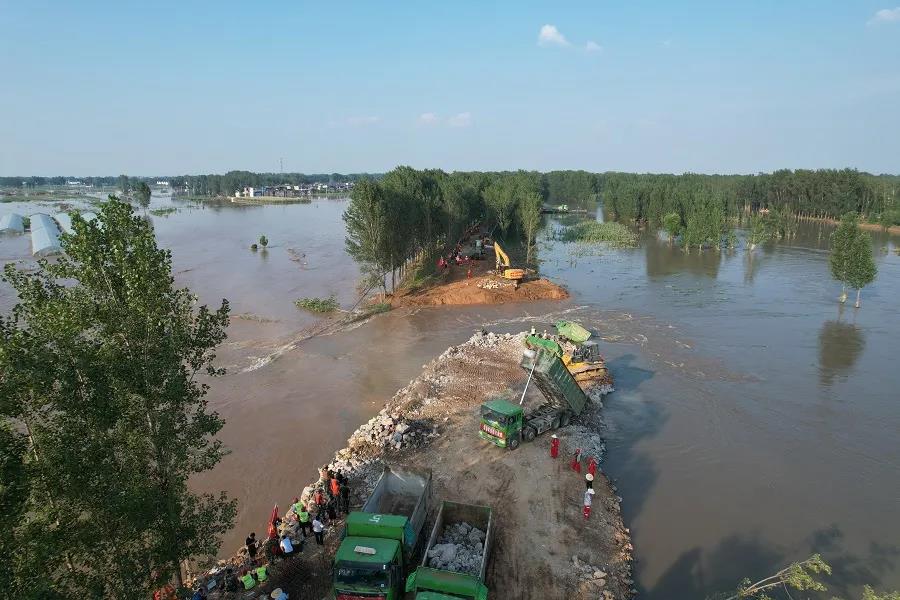 大堤上推土机轰隆隆作响,驾驶室内温度高达40℃。中国安能的专业操作手汪伟风汗水在脸颊直往下淌。他顾不上擦汗,全神贯注盯着前方。“参加这么多次决口封堵,这是最难的一次。”尽管这样,他和战友们的抢险步伐却一刻未停歇。“我们有信心坚决打赢决口封堵这场硬仗!”汪伟风坚定地说。