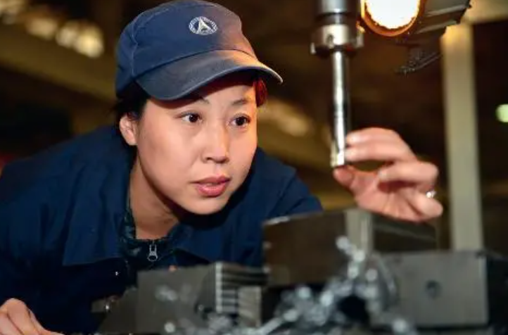 可谁能想到,当年,她高中毕业入职走上铣工岗位,由于从没受过正规训练,如何看懂工件图纸曾是她面临的难题。那段时间,只要有空她就钻研专业书籍,遇到不懂的问题就追着师傅和工友问。一天,她在家做饭时,想着白天的图纸,案上的土豆被她随手比画切成零件的形状。从此,她就用家里的土豆、萝卜切零件模型,帮助自己更直观地消化理解图纸。靠勤学苦练,她的技能水平日益提升。1999年,工厂数控加工刚刚起步,她作为首批数控操作工,又开始了边学、边干、边摸索的数控“菜鸟”起飞之路。白天练操作,晚上学理论,从初次尝试到熟练操作,再到参加各种数控技术培训,数控加工技术的神秘面纱被她一层层揭开。她逐渐成长为精通工艺、编程和操作的复合型高技能人才,成为数控加工领域的行家里手。