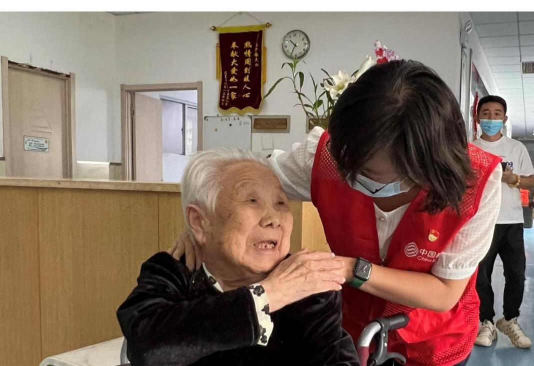 在江苏南京江北新区泰山街道泰山养老院,中国移动志愿者来看望在这里颐养天年的老人,并为他们送上了红歌、民族舞等精彩节目,还为老人打扫卫生、按摩,陪伴他们度过愉快一天。