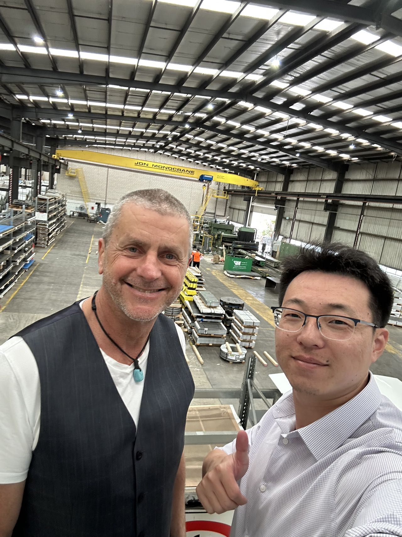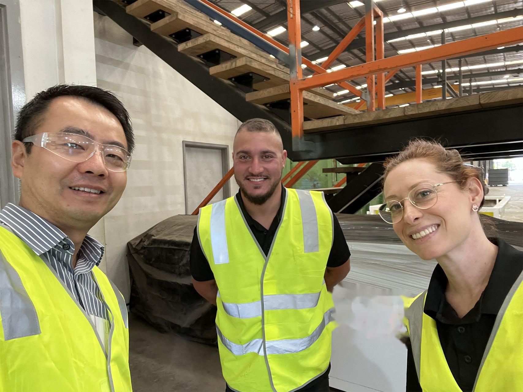 澳籍员工Simon(左一)在墨尔本进行钢板板型质量客户回访